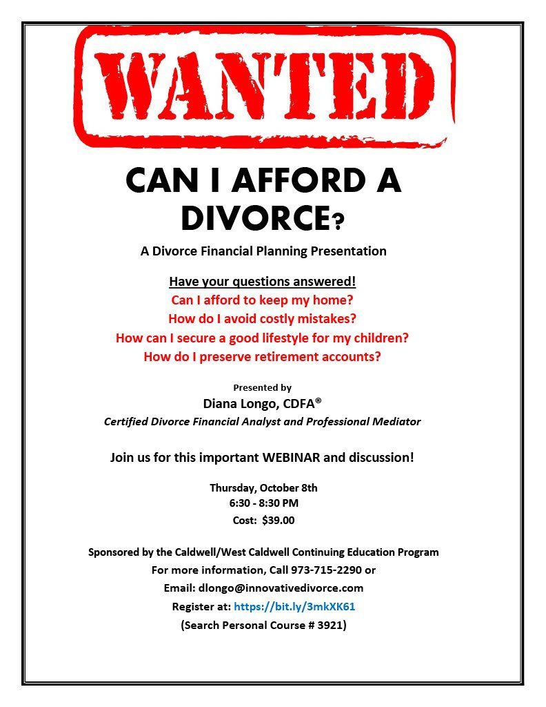 Sponsored by INNOVATIVE DIVORCE SERVICES, LLC and THE CALDWELL/WEST CALDWELL CENTER FOR CONTINUING AND COMMUNITY EDUCATION